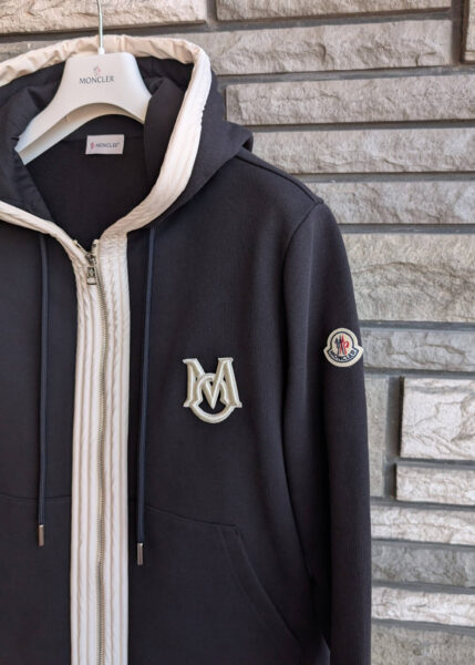 ★モンクレールのアウターとして着て頂きたい、春のアイキャッチ抜群のジップパーカジャケットが再入荷です★NAVYは今回が最終入荷、BLACKはSとMが残っている程度だと思います★¥202‚400(税込)ですが20%OFFで¥161920(税込)です★【2026年春夏の最新作です】※この春リリースされたばかりで、まだ誰も着ていないモデルですモンクレールの世界中の直営サイトでも2月15日現在販売が始まっていないです★★【アウターとして着るスウェットのジップフーディーです】★★【世界的な重要で中軽衣料が人気です】※コロナの流行で多くの方がスウェットを着ることに慣れてしまったこととヘビー過ぎない、でも薄すぎないアウターが良いということで、高密度で編み上げたスウェットのアウターが世界的に人気です★★【そこに使われるのがド詰めスウェットです】★★【ド詰めスウェットは、徹底的に高密度で編み上げたスウェットでタフなのに着やすいんですね】★【このモデルも店頭でハンガーにかけただけで、お客様が必ず目を留めるモデルです】★★【極薄の艶消しホワイトナイロンで縁取りされ、胸には立体のモノグラムロゴ刺繍で、袖にもロゴワッペンです】★★【着ているだけで目立つフーディージャケットです】★★アウターとしてご着用頂きたい、高密度で柔らかなフーディージャケットです