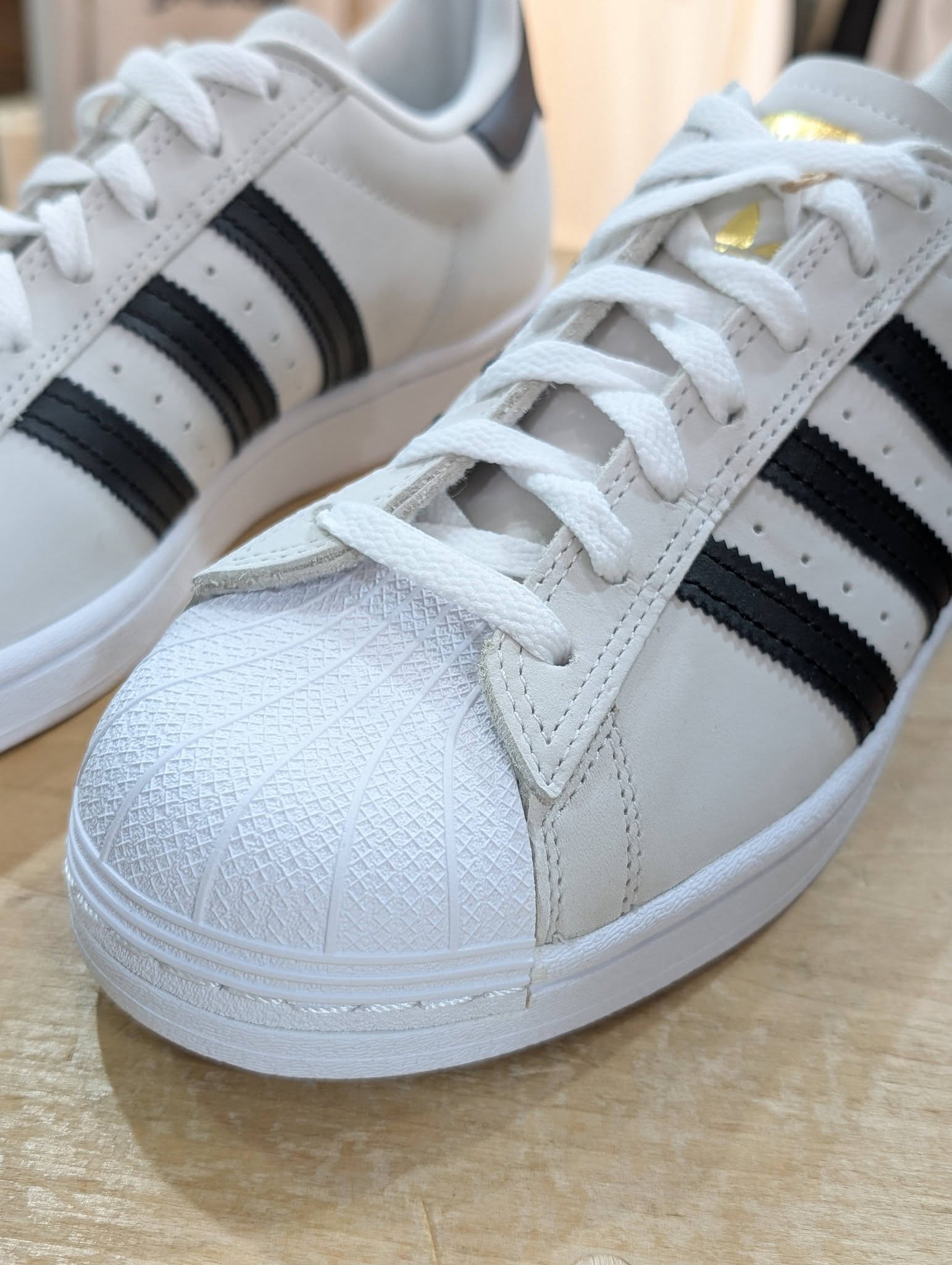 ★adidas(アディダス)のスケボーシューズSUPERSTAR ADVのヌバックレザー&金ベロモデルを¥9900(税込)で販売開始です