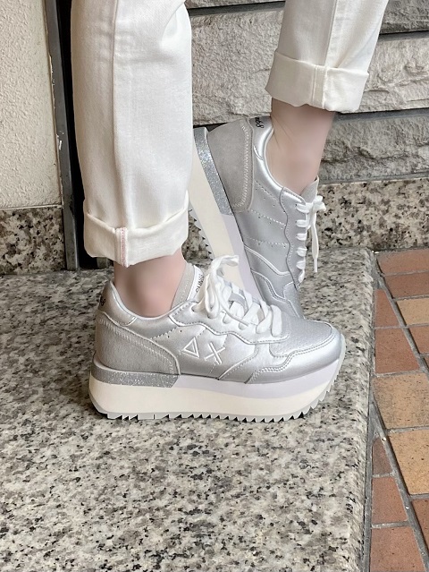NEW BALANCE(ニューバランス)スポーツからカジュアルまで快適に履ける696シリーズ【WCO696P6】(ホワイト/ピンク)23.5㎝です。¥8910ですが半額で¥4455(税込)です。 |  【SUN68(サンシックスティーエイト)】厚底スニーカー(シルバー)39サイズです。¥28600(税込)が65%OFFで¥9900(税込)になります。 |