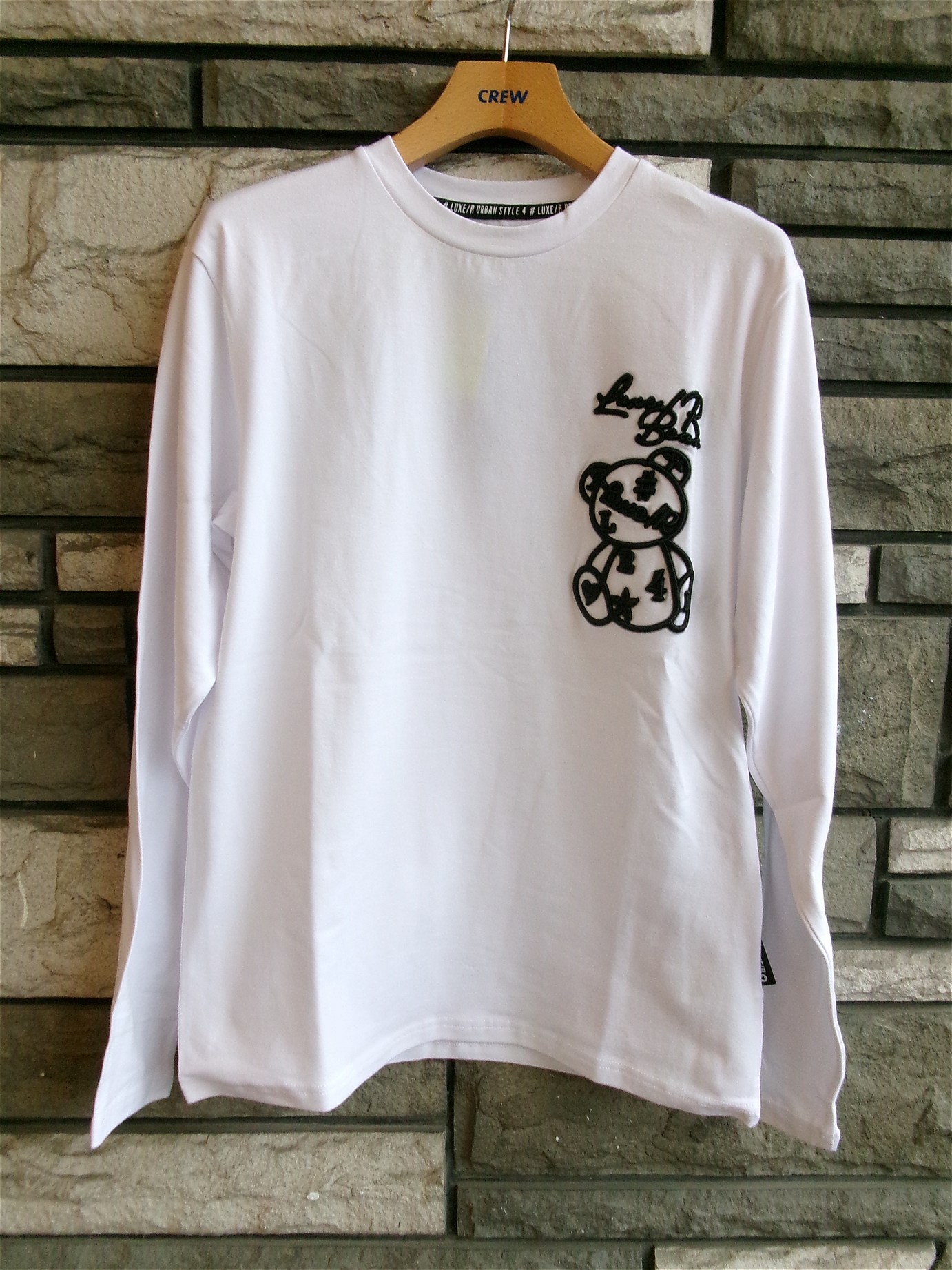 ★CREWがLUXE/Rに別注をかけた【快適に縦横斜めにストレッチする】【胸にくまちゃんの立体刺繍の入った】長袖Tシャツを【20%OFF】でアップしました