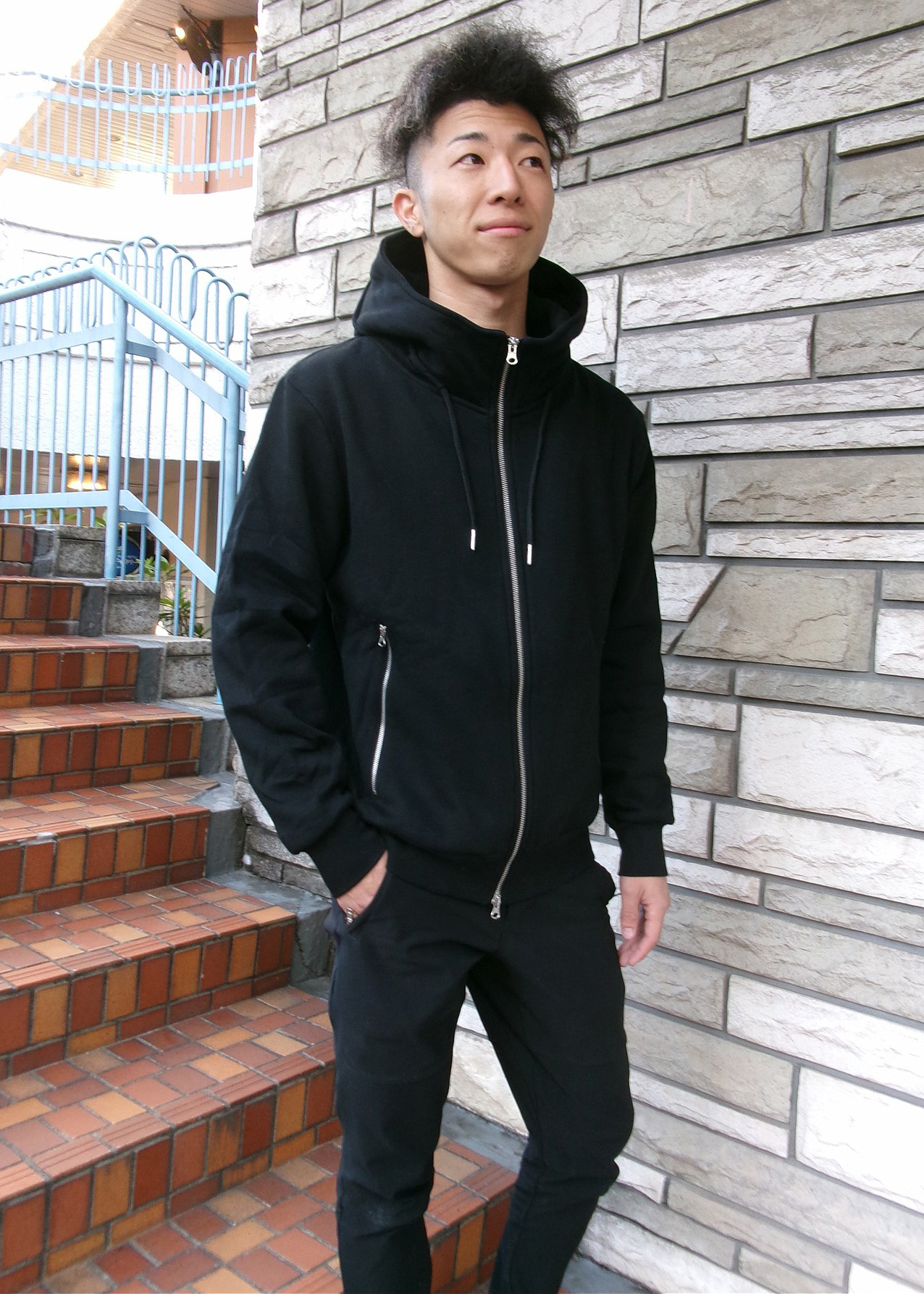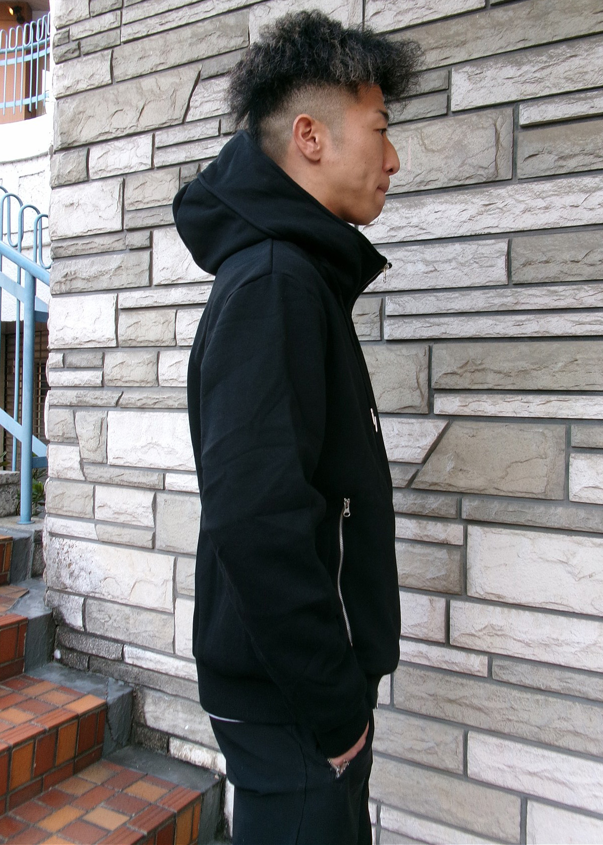■TRIPLE CROSS(トリプルクロス)の【頭がすっぽり入るくらいにゆったりしたハイネックのジップアップフード】のロゴ無しバージョンのブラックが入荷です!