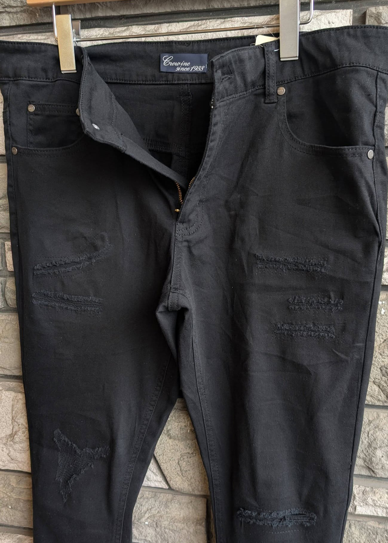 ★CREW別注の【ダメージ加工のブラックストレッチパンツが¥4400(税込)セールです】!!
