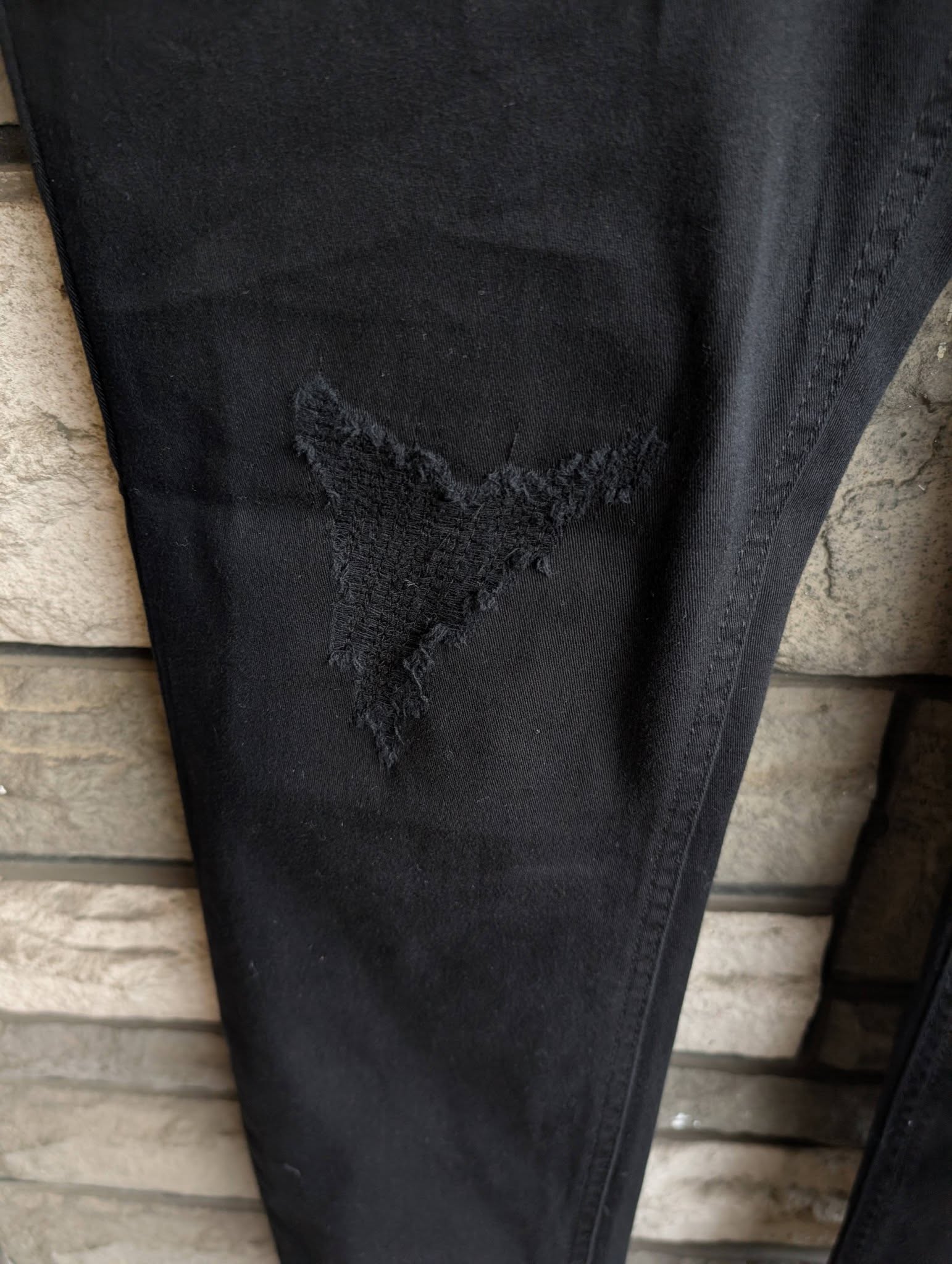 ★★リーズナブル価格で、ストレッチして、ダメージ加工も穴がふさいである、快適なストレッチブラックパンツです